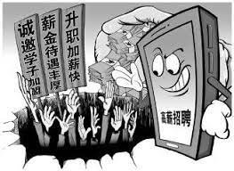 陷阱一:招聘方 掛羊頭賣狗肉。 本公司招聘行政文職人員1名,月薪1500元2000元,包吃住,解決戶口問題。某大學(xué)畢業(yè)生看到這則招聘廣告,滿懷期待地投遞簡歷后,怎么也想不到實(shí)際工作竟是和行政文員風(fēng)馬牛不相及的銷..